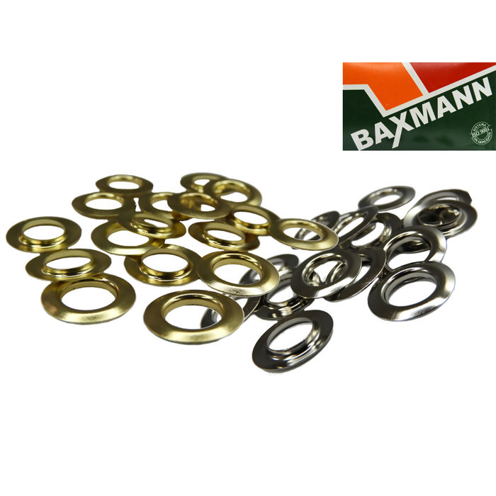 As Arruelas 51 Baxmann tem formato circular e são utilizados junto com os ilhoses para diversas finalidades, seja na parte estética, ou funcional, permitindo a passagem de fitas, cordões, cadarços, entre outros.