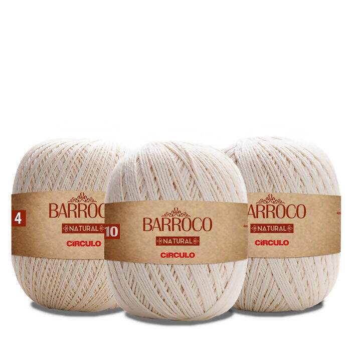O fio Barroco Natural tem toque e maciez incomparáveis. Possui composição 100% algodão. Além disso, possui massa pura e fibras longas, o que garante uma durabilidade muito maior aos seus trabalhos Artesanais.
