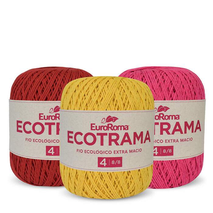 Composto por 85% algodão reciclado e 15% outras fibras o barbante Ecotrama é ideal para trabalhos em Crochê, Tricô, Tear, Macramê e Artesanato em geral.