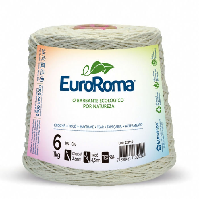 Descrição Barbante EuroRoma N°6 Cru 1Kg