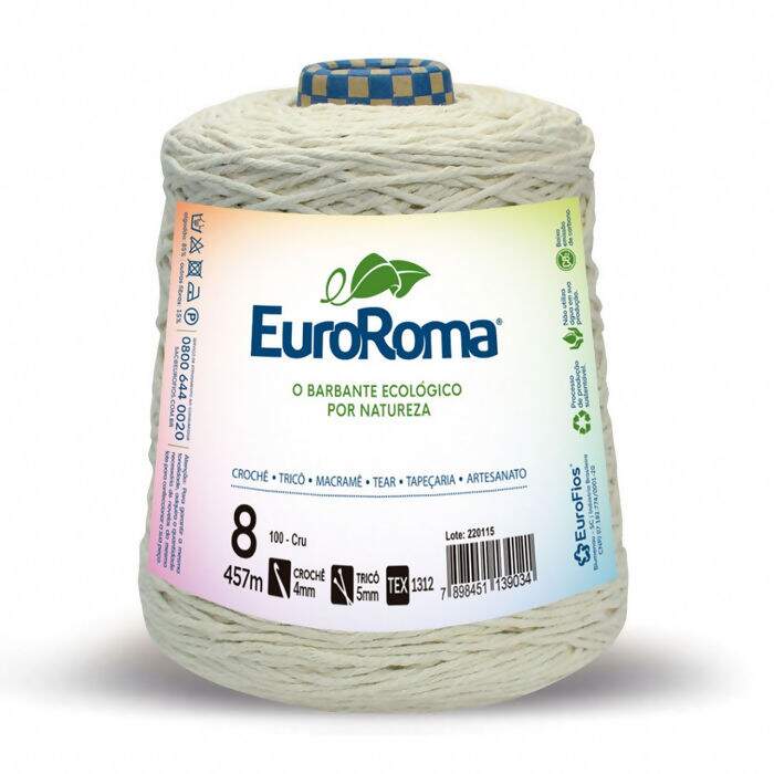 Descrição Barbante EuroRoma N°8 Cru 600g