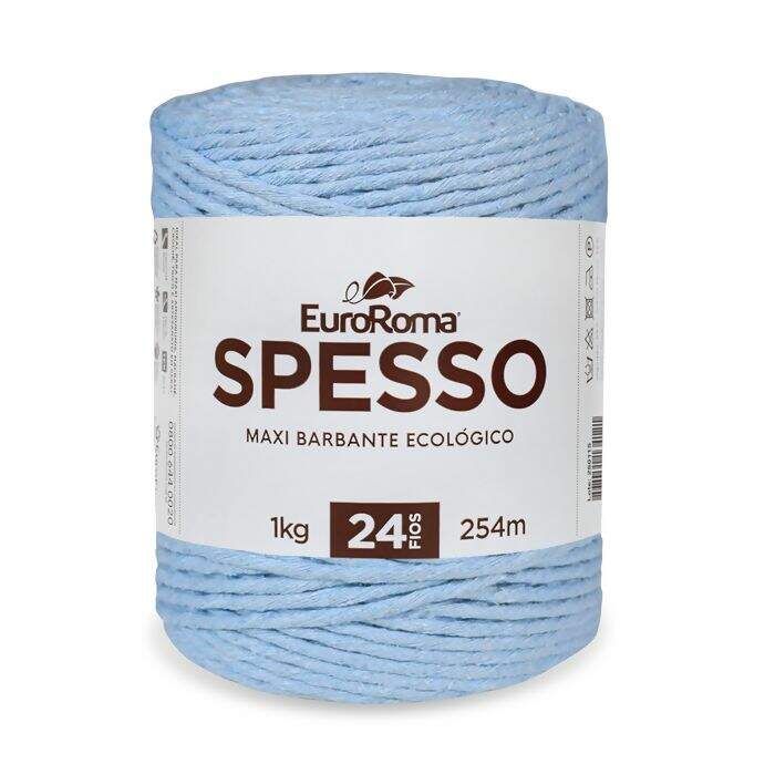 O EuroRoma Spesso é um barbante de 24 fios desenvolvido com matéria-prima reciclada, perfeito para as técnicas de macramê, crochê, tricô e tear. Baseado em uma tendência de arte com fios mais grossos, onde a peça cresce com velocidade nas mãos do artesão, resulta em macro texturas com pontos super evidentes, muito em alta na decoração e também é ideal para maxi amigurumis.
