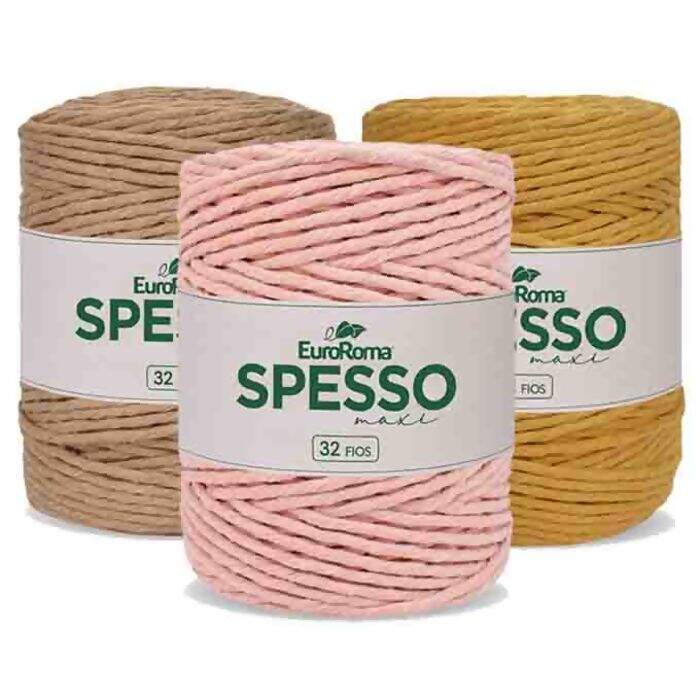 O EuroRoma Spesso Maxi de titulagem 4/32 é um barbante 32 fios, por isso é perfeito para a elaboração de peças em macramê e demais artes manuais. Resulta em macro texturas com nós e pontos super evidentes.