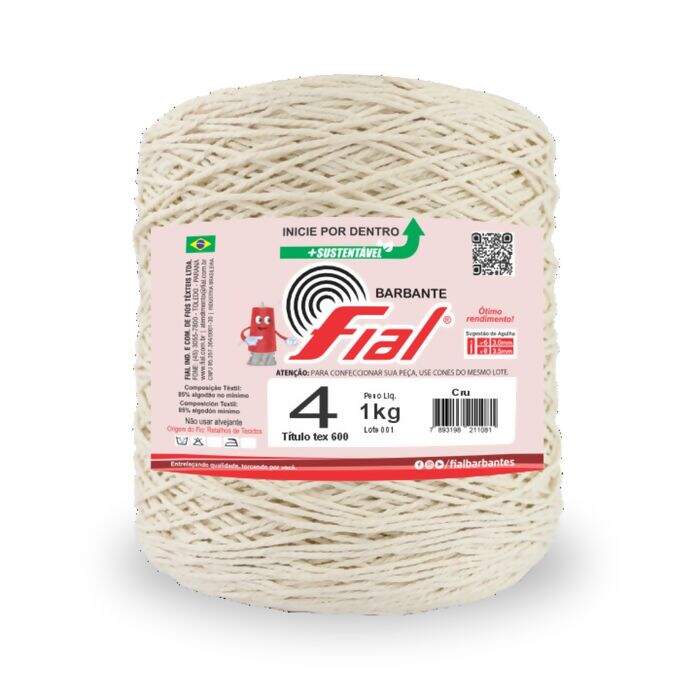 Descrição Barbante Fial Cru + Sustentável 1kg - N.4