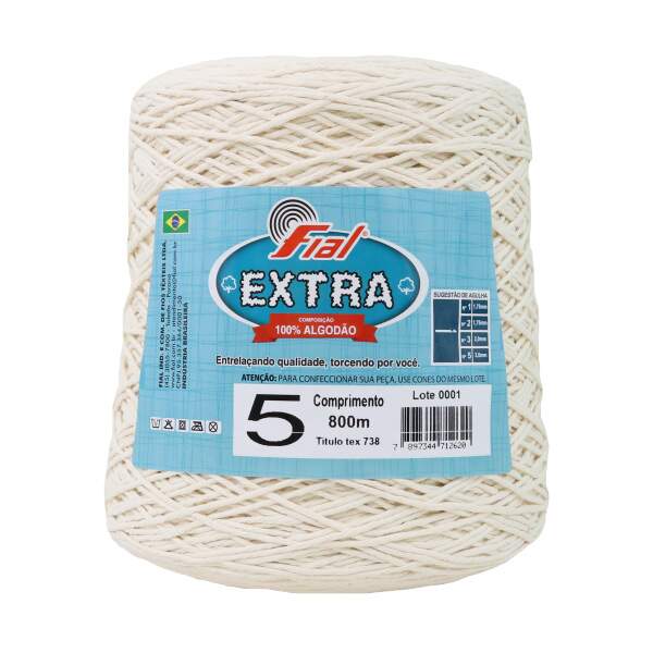 Descrição Barbante N°5 Fial Extra 100% Algodão Cru 600g 800m