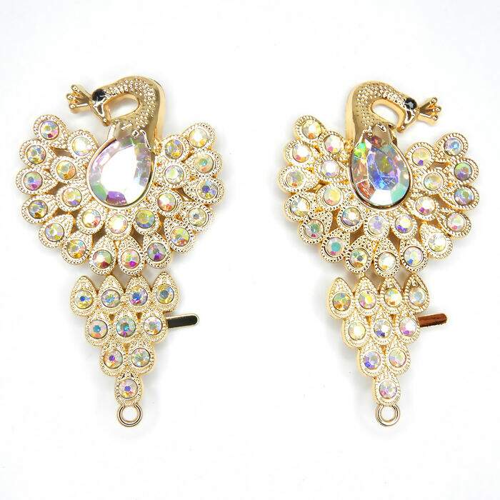 Lindo cabedal utilizado para enfeitar chinelos. Seu formato de pavão o torna uma peça única