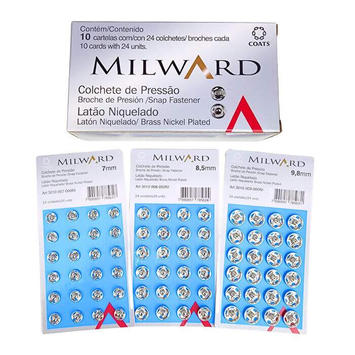 Colchete de Pressão Milward. Cada colchete é produzido com materiais de alta qualidade, assegurando que suas peças permaneçam firmemente unidas por muito tempo, o tornando assim um produto essencial para quem busca durabilidade, qualidade e versatilidade em suas criações de costura e artesanato.