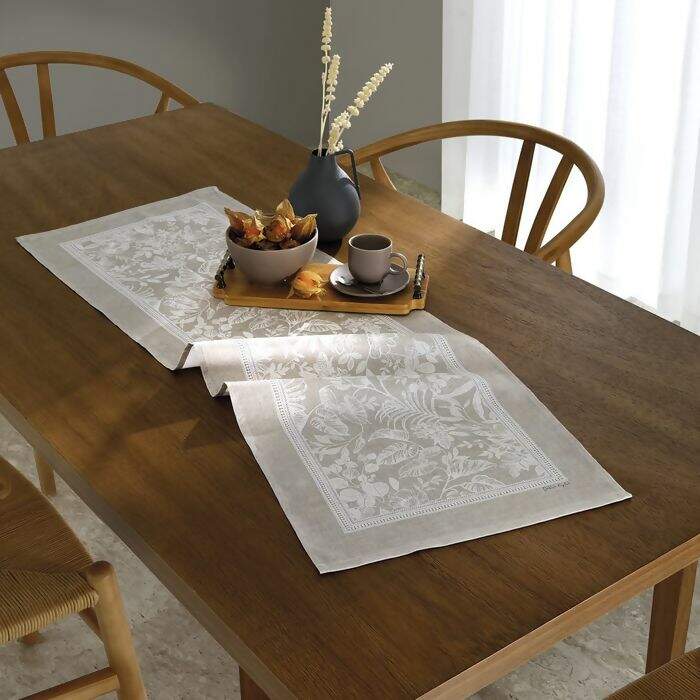 Com nova tecnologia de estamparia digital, a linha Renova é eco-responsável e possui estampas com desenhos ainda mais vívidos e ricos em detalhes. Produzida em tela mista 50% algodão 50% poliéster, com gramatura de 167 g/m², conta com o acabamento Döhler Clean, uma proteção especial contra manchas que limpa facilmente passando apenas um pano de imediato sobre o produto. Adicione charme à sua decoração de mesa. Compre agora e transforme cada refeição em um momento especial!