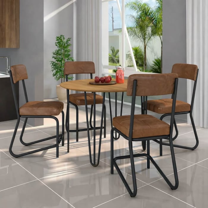Conjunto de Mesa com 4 Cadeiras Versalhes Fabone - Preto/Caramelo