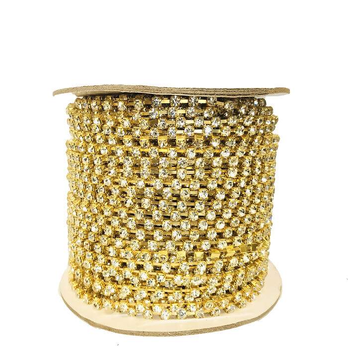 Descrição Corrente de Strass Dourado SS16 Importado N°16 50 JDS
