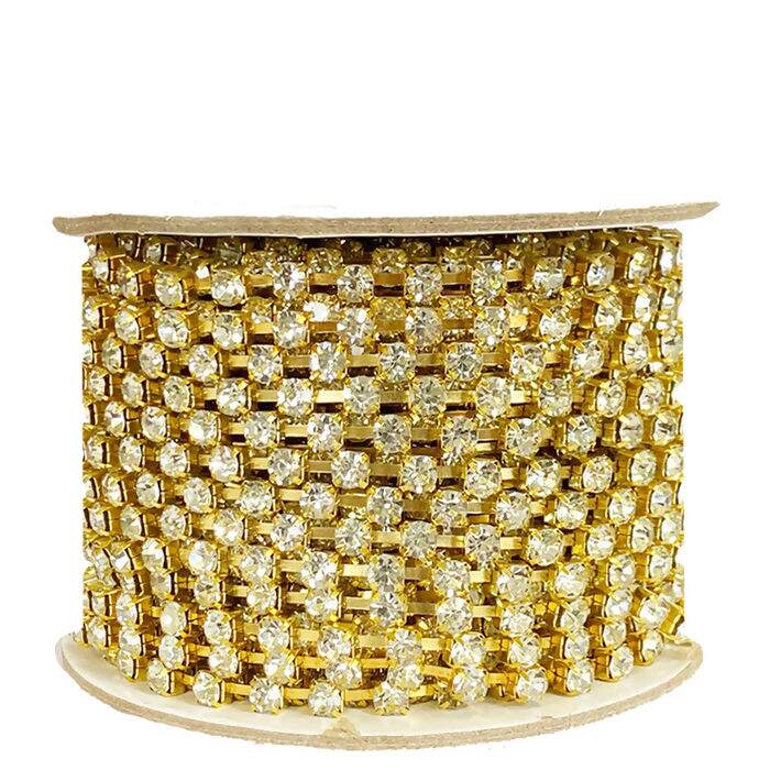 Corrente de Strass Dourado SS28 Importado N°28 com 18 Metros