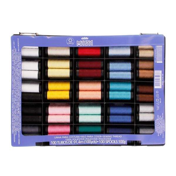 O Estojo de Linha para Costura Magna é uma adição essencial ao seu kit de costura. Ele oferece a versatilidade de cores, qualidade e conveniência necessárias para transformar suas ideias em realidade. Não importa se você é um profissional experiente ou um iniciante entusiasmado, este conjunto de 100 bobinas de linha facilita a costura e garante resultados incríveis.