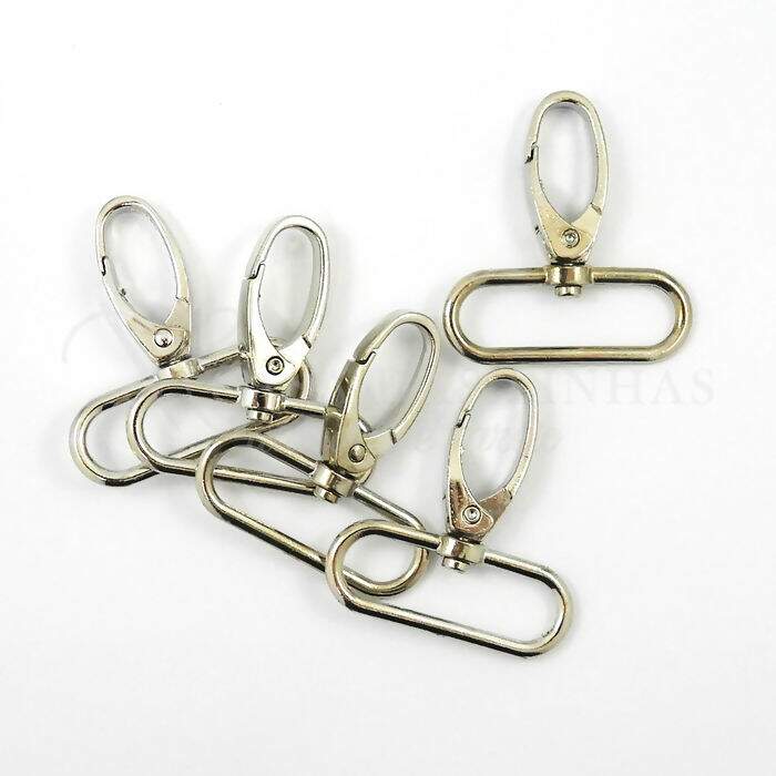 Fecho Mosquetão com Passante Níquel HK-5 - 5 unidades