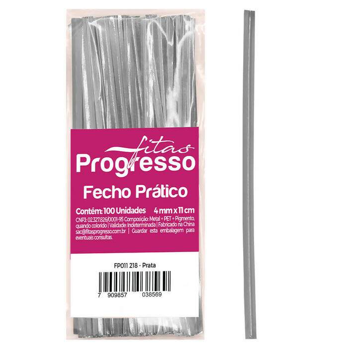 Fecho Prático P/ Embalagem Progresso FP011 4mm x 11cm 100 Unid - 218 Prata