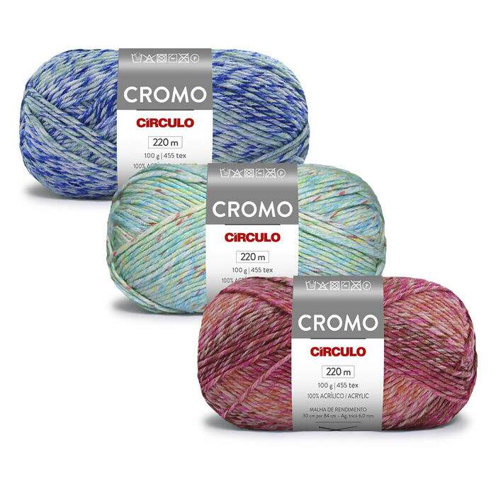 O fio Cromo é ideal para quem busca maciez e estilo moderno. Feito 100% de acrílico, oferece um toque suave e confortável. Sua paleta de cores vibrantes e sofisticadas permite criar peças contemporâneas e cheias de personalidade!