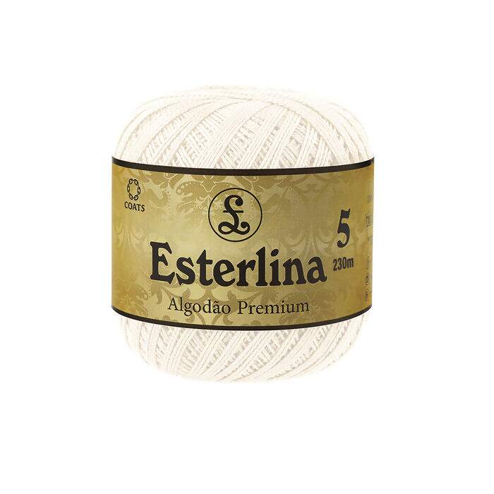 Esterlina 5 é a linha mais grossa, fabricado com o melhor algodão do mundo, importado diretamente do Egito ela possui torcimento suave e um brilho excepcional, possibilitando a confecção de peças em crochê e tricô, como peças de vestuário. Além disso, o tingimento não desbota mesmo ao ser lavada com alvejante.