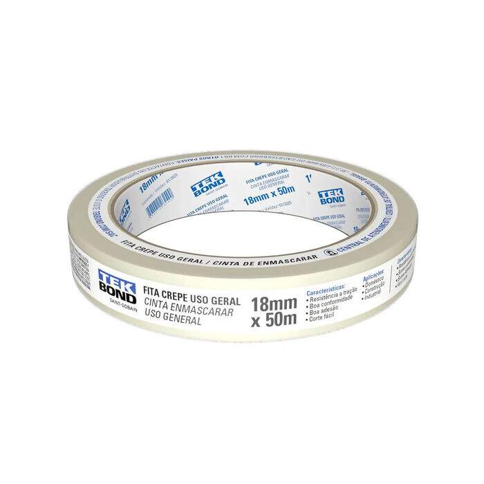 Descrição Fita Crepe Tekbond Uso Geral 18mm x 50m