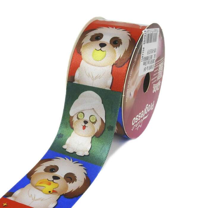 Fita de Cetim Decorada N°09 Pet decorada da marca Progresso, possui largura de 38mm. O rolo contém 10 metros de comprimento e sua composição é de 100% poliéster.