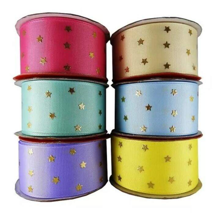 Fita De Gorgurao Com Estrelas Douradas - 40mm