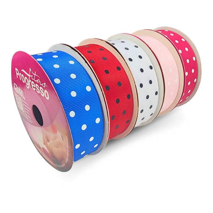 Descrição Fita de Gorgurão com Poá PGS 22mm Progresso N°05 10m