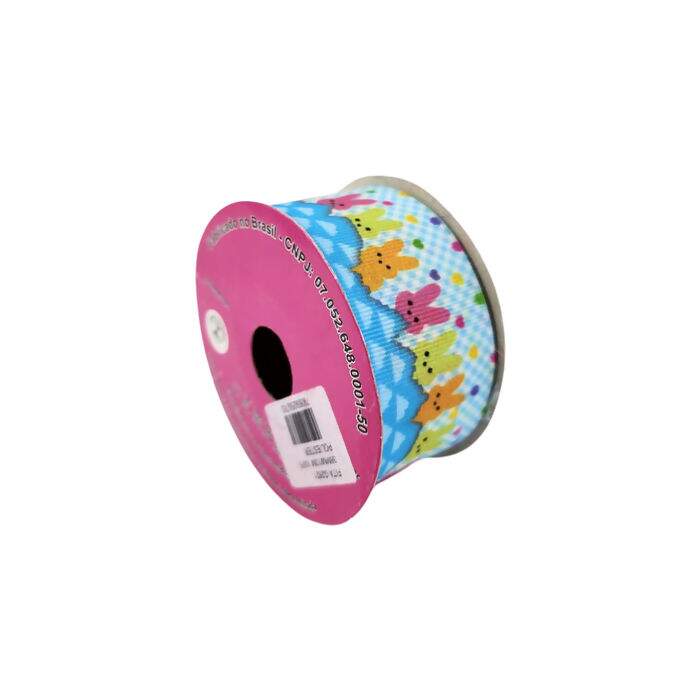 Fita de Gorgurão estampada Arte Fitas Páscoa 38mm 10m - G2621 Coelhos