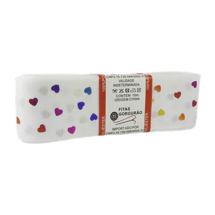 Descrição Fita de Gorgurão para Laços 38mm Sanding Branca com Coração N°09 10m