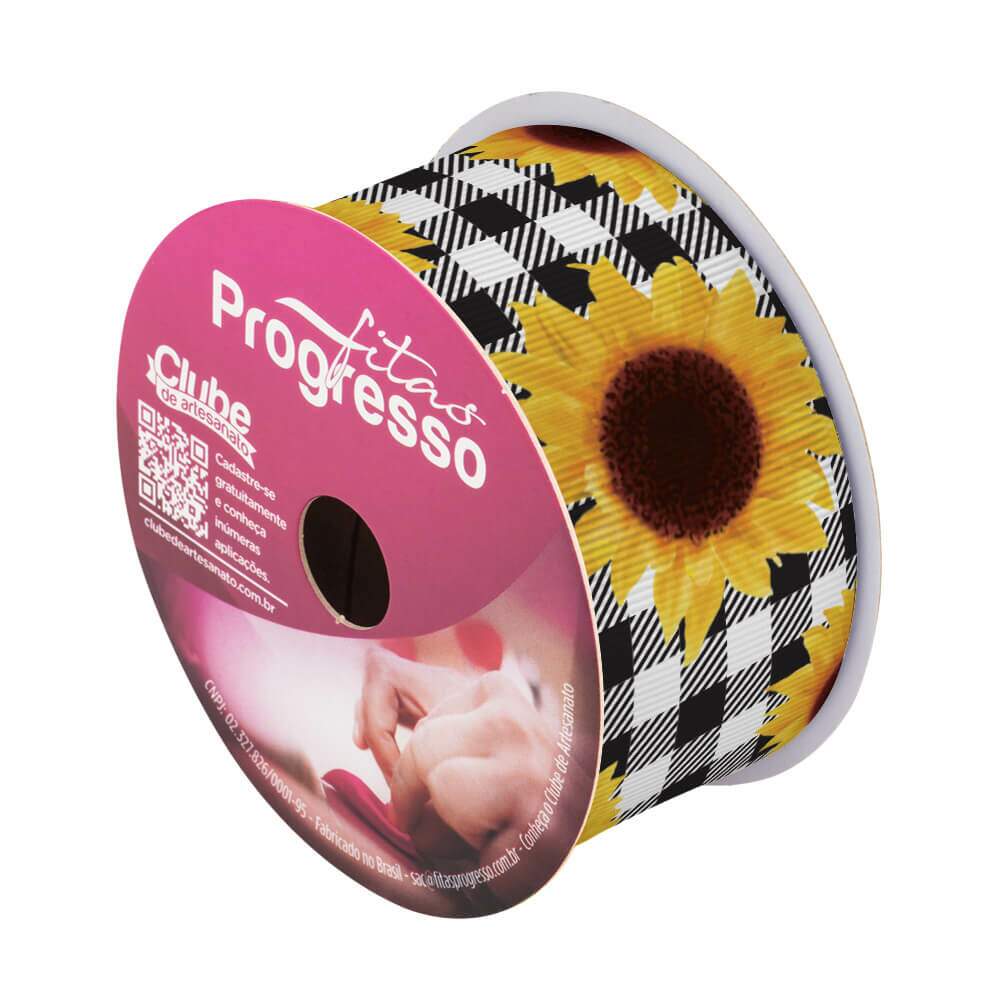 Descrição Fita de Gorgurão Progresso EGP009TR 38mm 10m - Cor 334 Xadrez Preto e Branco C/ Girassol