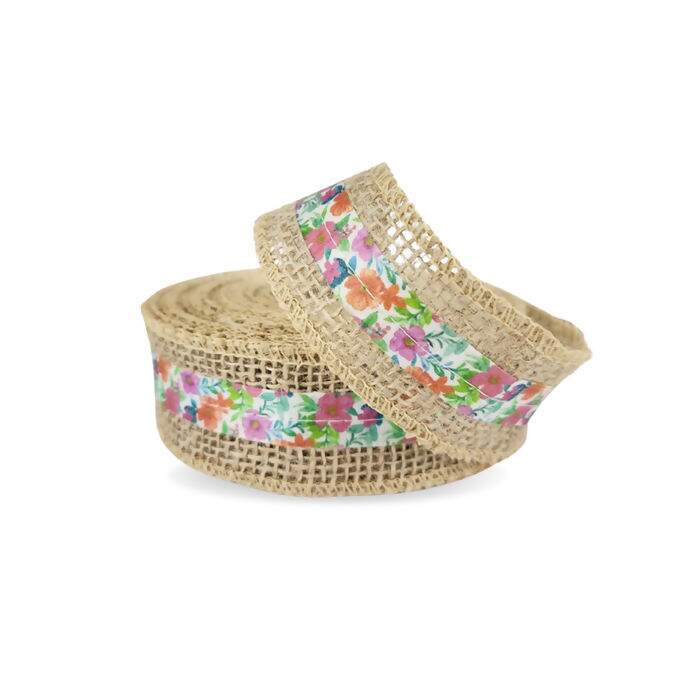 Fita de Juta c/ Chita Uniart 40mm 9,5m - Floral Pink
