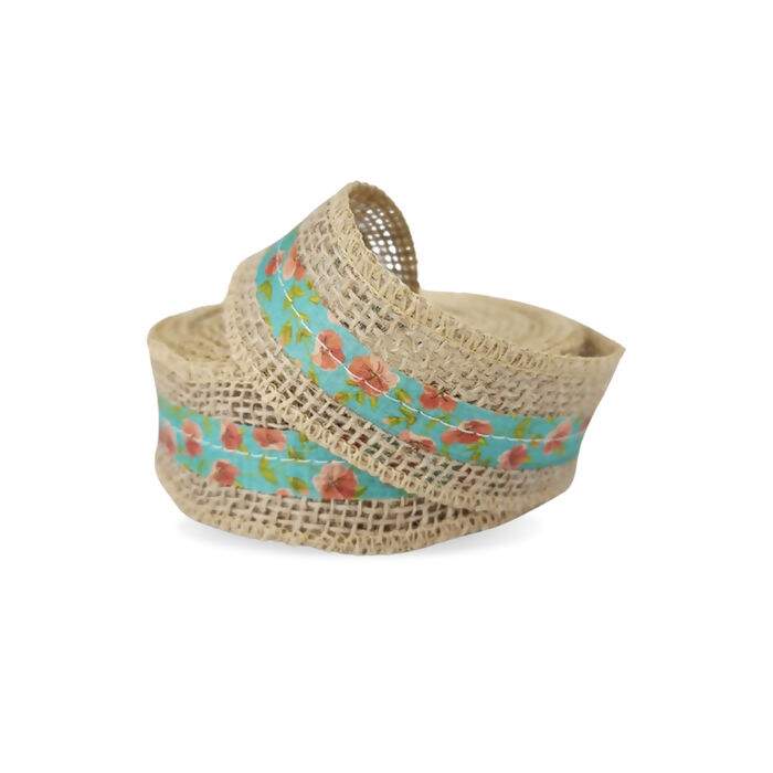 Fita de Juta c/ Chita Uniart 40mm 9,5m - Floral Turquesa