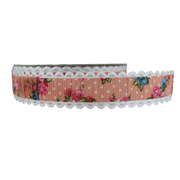 Descrição Fita Decorativa 2cm Flores c/ Poá 109594 Central - 10m