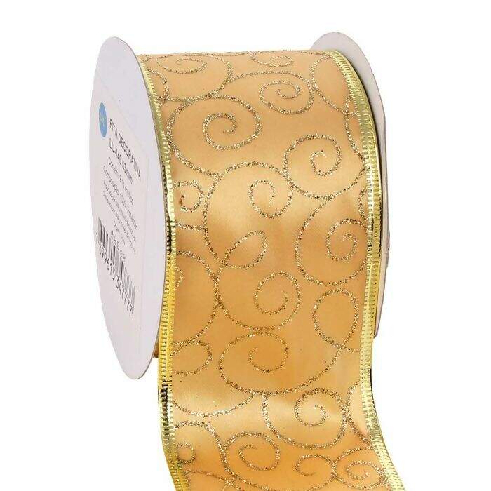 Fita Decorativa Natal Bordas Douradas Luli LU-140 63mm 9,14m