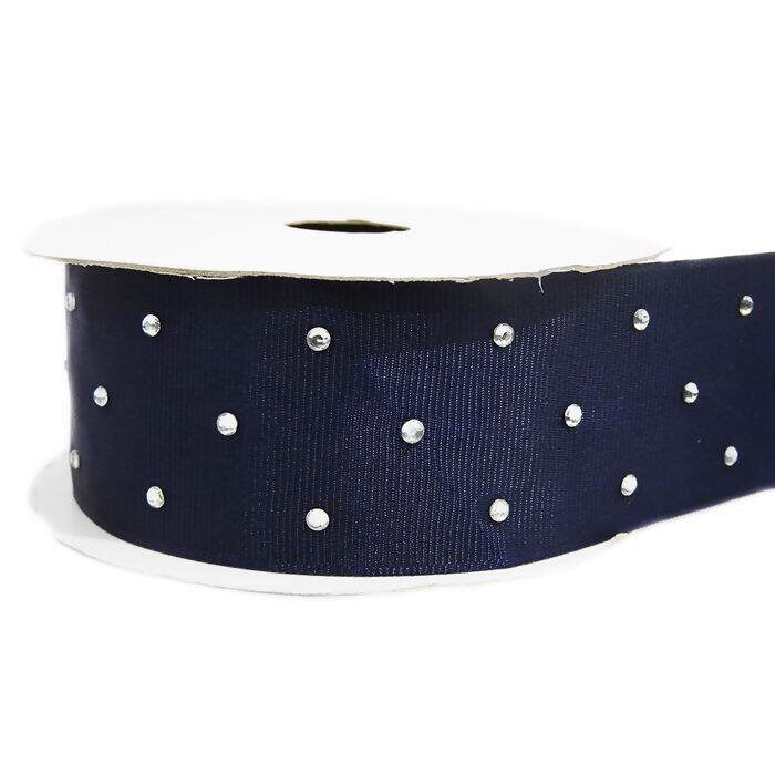 Fita Gorgurão Imp. 38mm C/ Strass Nº 9 Azul Marinho - 10 Jardas