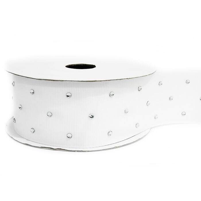 Descrição Fita Gorgurão Imp. 38mm C/ Strass Nº 9 Branco 209 - 10 Jardas