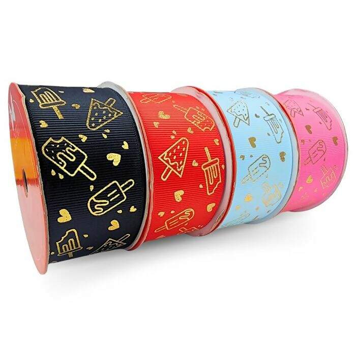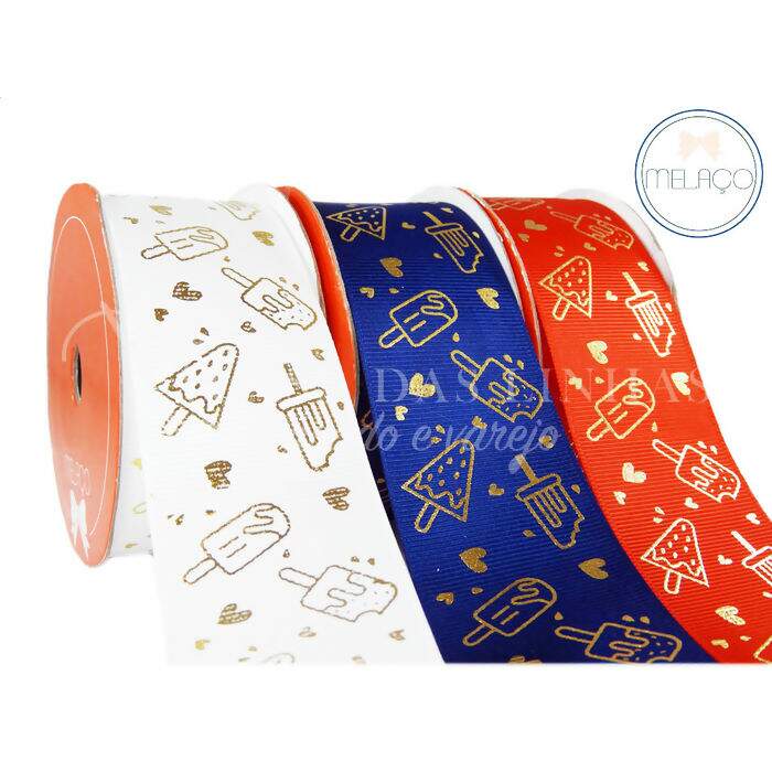 Fita Gorgurão, com Desenhos de Sorvete na cor Dourada