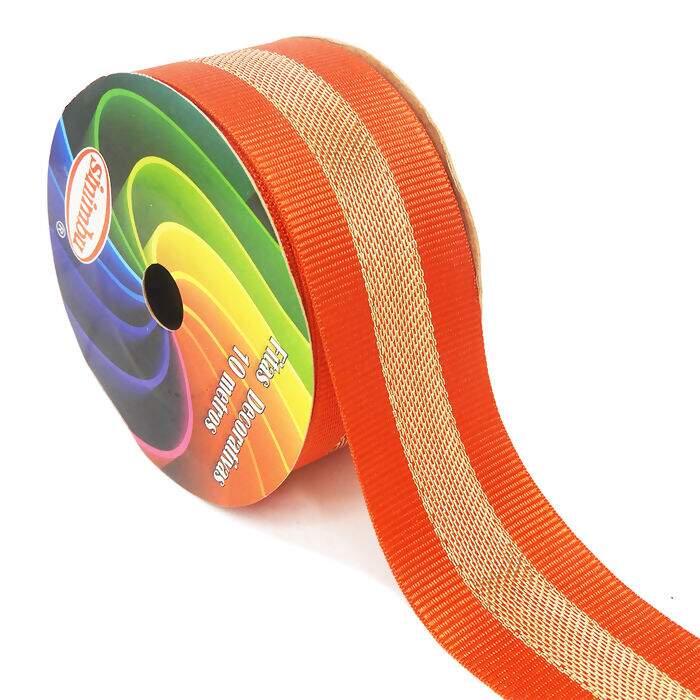 Descrição Fita Gorgurão Sinimbu 1854 Vermelha Com Lurex Dourado 10m