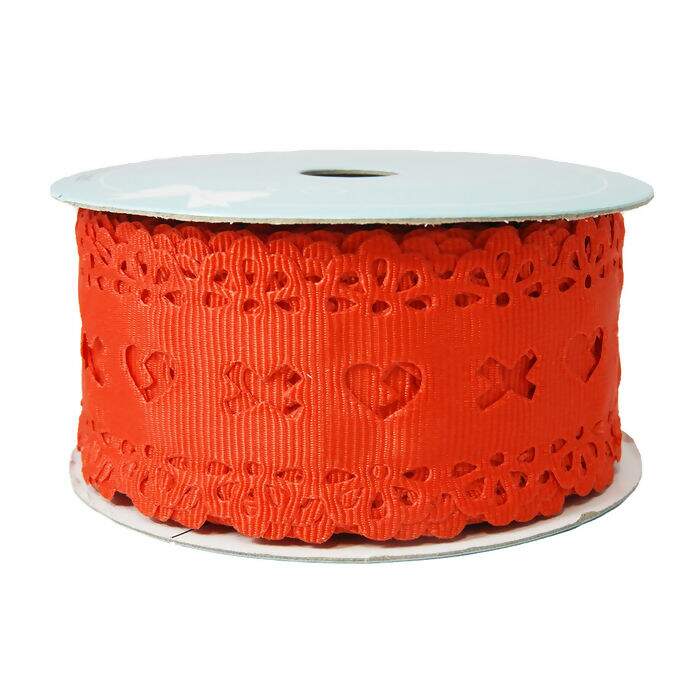 Fita de Gorgurão Vazada Coração Melaço 40mm