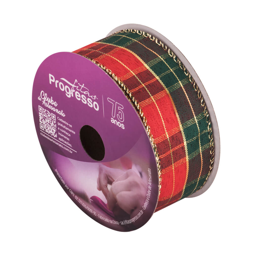 Dê um toque especial e festivo às suas decorações de Natal com a Fita Natalina Aramada Lurex XC026 da Progresso. Com 38mm de largura e 10 metros de comprimento, esta fita apresenta um elegante padrão xadrez natalino, perfeito para adornar presentes, enfeitar sua árvore de Natal e criar arranjos festivos encantadores.