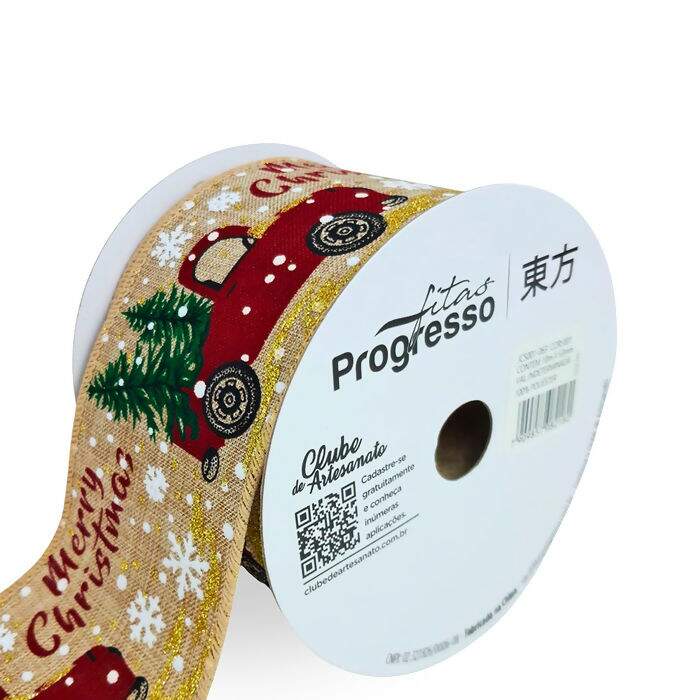 Descrição Fita Natalina Progresso Aramada JCS001 C/ Glitter 63mm - 001 Carro
