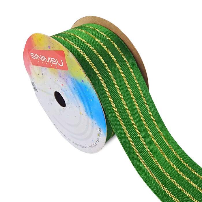 Fita de Natal Sinimbu modelo 1997 sem arame. Esta fita traz a alegria e o calor do Natal com um toque de elegância dourada para sua casa ou evento, tornando-o perfeito para celebrações familiares, festas temáticas e eventos especiais.