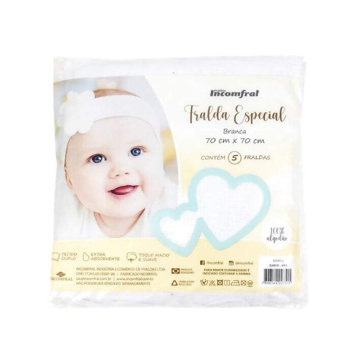 Fralda Especial Incomfral 70cm x 70cm C/5 Unid - Branca