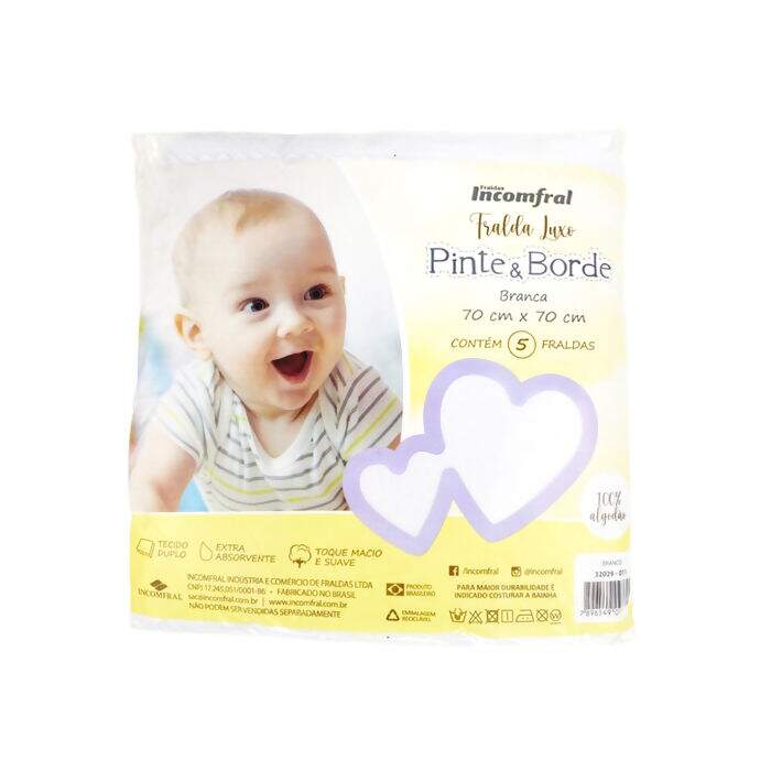 Fralda Incomfral Luxo Pinte e Borde C/5 Unidades 70cm x 50cm - Branca