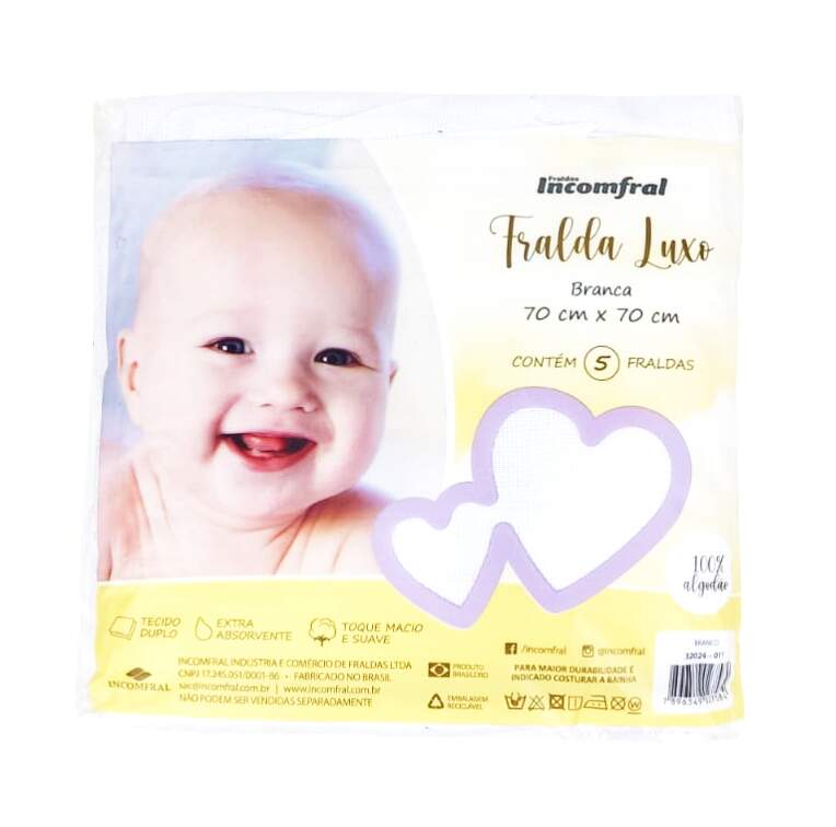 Descrição Fralda Luxo Incomfral 70cm x 70cm C/5 Unid - Branca