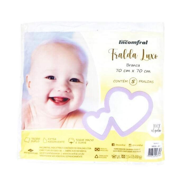 Fralda Luxo Incomfral 70cm x 70cm C/5 Unid - Branca