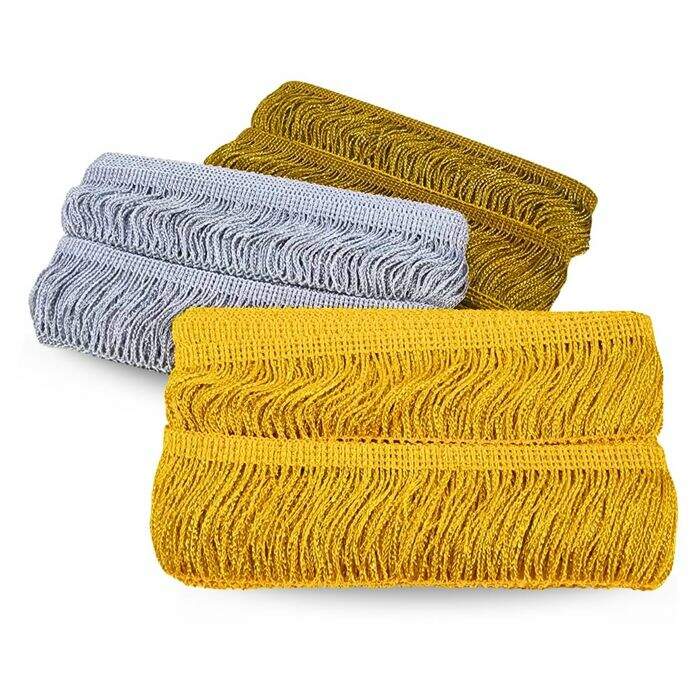 Ideal para acabamentos decorativos que valorizam o brilho e o movimento, a Franja Metalizada 50mm é uma excelente escolha para dar um toque especial a cortinas, almofadas, roupas, fantasias, bolsas e muito mais. Seu caimento suave e textura macia trazem elegância artesanal aos projetos de moda ou decoração. Com brilho sutil e acabamento delicado, pode ser aplicada com costura ou colagem, sendo perfeita para peças criativas, personalizadas e com acabamento de qualidade.