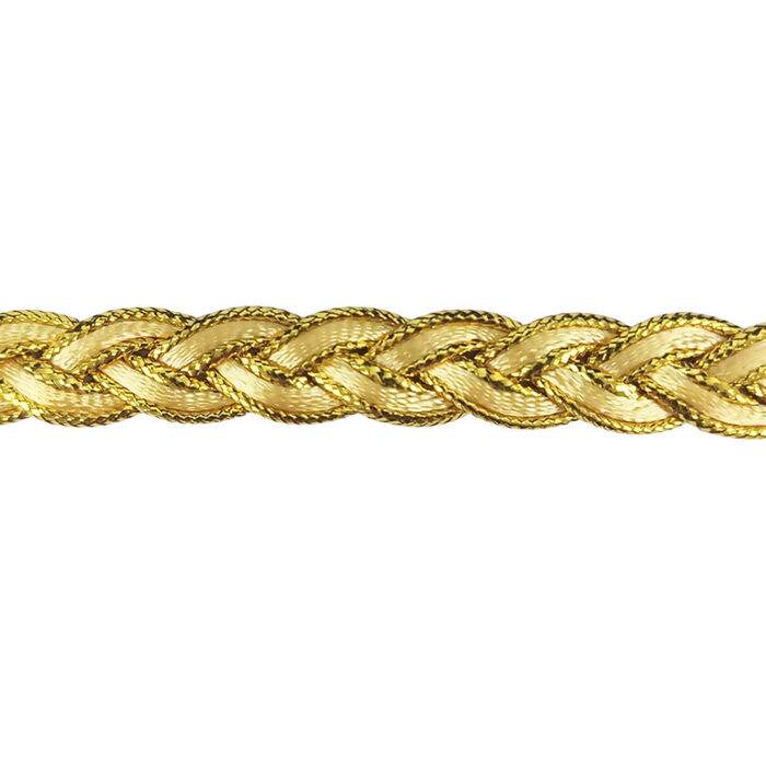 Galão Trançado 150901 Creme/Dourado. Ideal para seus trabalhos de decoração e artesanato, acessório decorativo, acabamentos em vários produtos, finalização de trabalhos manuais, caixas, trabalhos em tecido, trabalhos em scrapbook, enfeites em roupas e acessórios entre outras diversas utilidades.