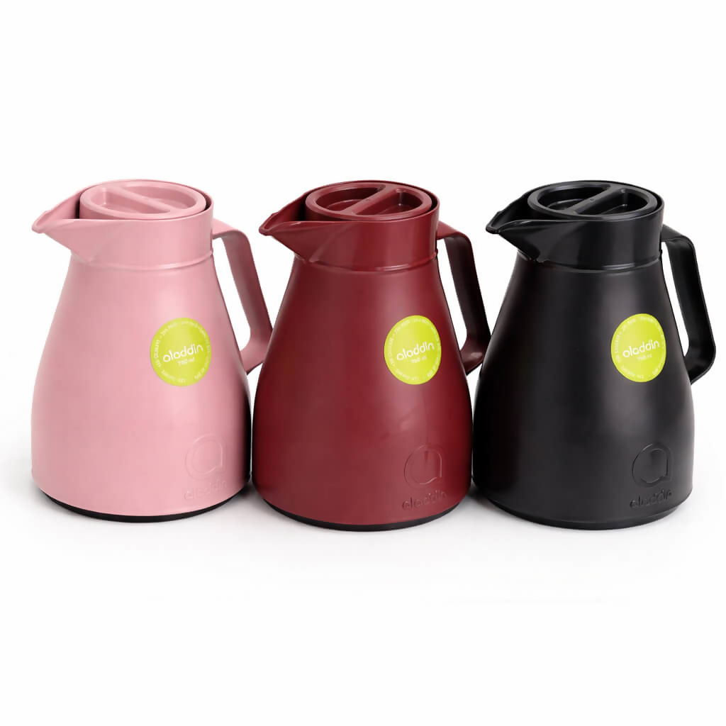 A garrafa térmica tipo bule Valencia da Aladdin é a escolha perfeita para manter bebidas quentes ou frias por mais tempo com praticidade e estilo no dia a dia, combinando um design funcional com tampa tipo rolha que facilita o uso e evita vazamentos, além de corpo resistente que garante durabilidade nas rotinas de casa ou escritório; ideal para servir café, chá ou outras bebidas em encontros, refeições ou momentos de pausa, proporcionando isolamento térmico eficiente e fácil manuseio.
