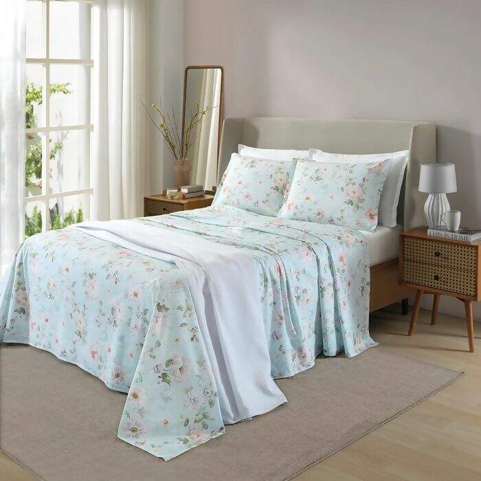 A estampa possui desenhos florais e cores suaves, que compõe um padrão romântico para embelezar seu ambiente. O padrão de estamparia é feito a partir do processo de estamparia digital, que é uma prática sustentável e menos agressiva ao meio ambiente. Além disso, esse tipo de fabricação também traz ao produto um maior detalhamento nos desenhos da estampa, garantindo uma beleza única ao seu produto.