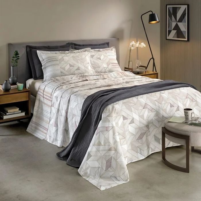 Jogo de Cama Casal Queen Rubi Dobra Feita 200 Fios Dohler 4 peças - Kira D