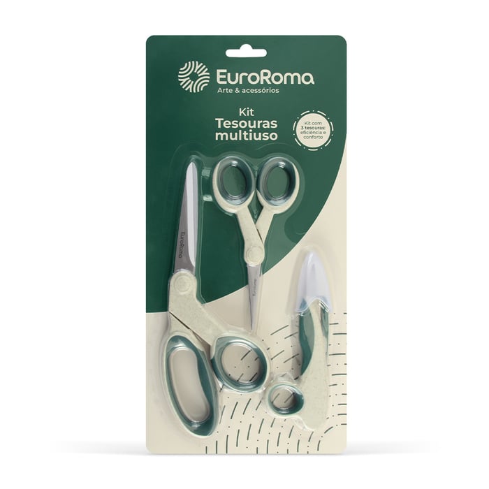 Descrição Kit 3 Tesouras Multiuso Euroroma Para Artesanato