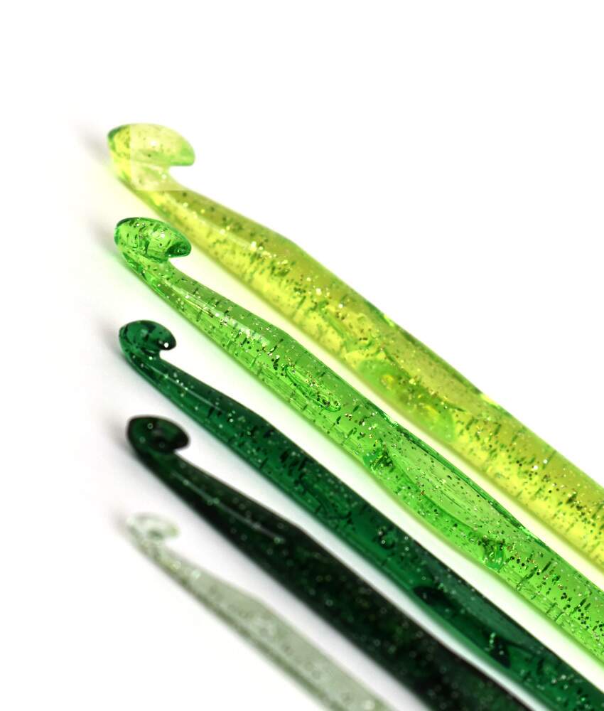 O kit com 5 agulhas de crochê em acrílico com glitter é perfeito para quem busca praticidade, leveza e um toque de estilo nos trabalhos manuais. Com visual moderno e cores translúcidas com efeito glitter, as peças tornam o momento do crochê ainda mais agradável, sem abrir mão da funcionalidade.